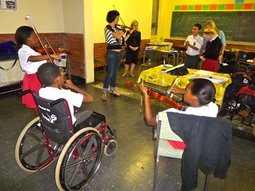 We have partnered with a primary school in KwaMashu, Bonisinani Primary and twice a week 54 children whom we have given full music bursaries to come to the school for lessons. We have an outreach programme at The Open Air School, which is a school for physically disabled children, and we teach 120 learners at the school 4 times a week.